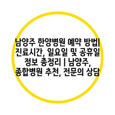 ✅ 남양주 한양병원의 진료시간과 예약 방법을 자세히 알아보세요!