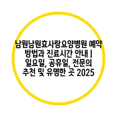 남원남원효사랑요양병원 예약 방법과 진료시간 공지 | 일요일, 공휴일, 전연락 추천 및 유명한 곳 2025에 대해 알아보겠습니다.
