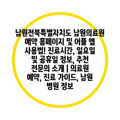 남원전북특별자치도 남원의료원 예약 홈페이지 및 어플 앱 사용법! 진료시간, 일요일 및 공휴일 정보, 추천 전문의 소개 | 의료원 예약, 진료 가이드, 남원 병원 정보