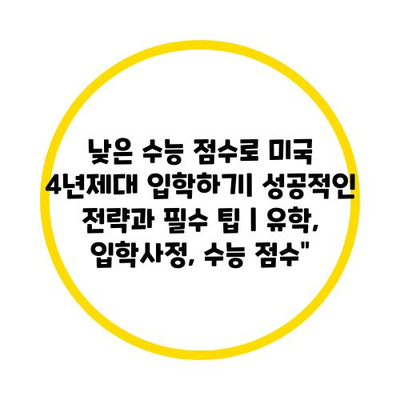 낮은 수능 점수로 미국 4년제대 입학하기| 성공적인 전략과 필수 팁 | 유학, 입학사정, 수능 점수”