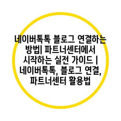 네이버톡톡 블로그 연결하는 방법| 파트너센터에서 시작하는 실전 가이드 | 네이버톡톡, 블로그 연결, 파트너센터 활용법