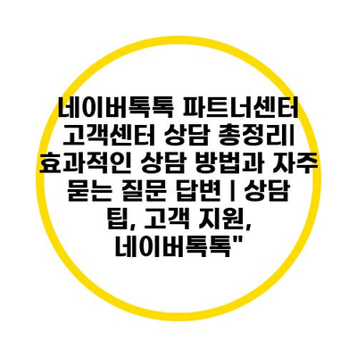 네이버톡톡 파트너센터 고객센터 상담 총정리| 효과적인 상담 방법과 자주 묻는 질문 답변 | 상담 팁, 고객 지원, 네이버톡톡