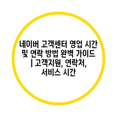 네이버 고객센터 영업 시간 및 연락 방법 완벽 가이드 | 고객지원, 연락처, 서비스 시간