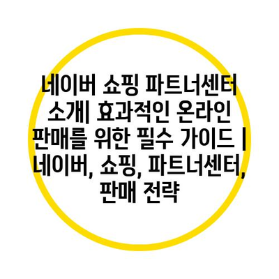 네이버 쇼핑 파트너센터 소개| 효과적인 온라인 판매를 위한 필수 설명서