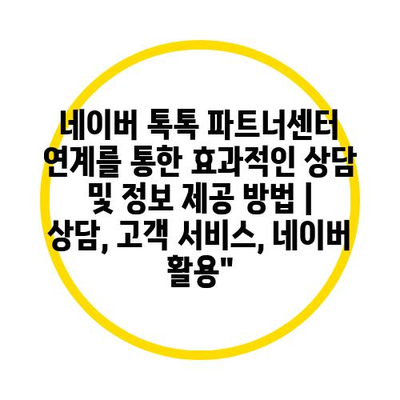 네이버 톡톡 파트너센터 연계를 통한 효과적인 상담 및 정보 제공 방법은 고객 서비스의 새로운 패러다임을 제시합니다.