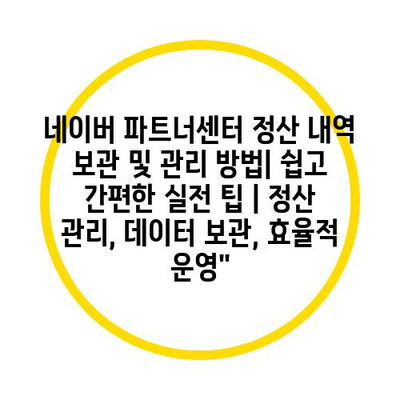 네이버 파트너센터 정산 내역 보관 및 관리 방법| 쉽고 간편한 실전 팁 | 정산 관리, 데이터 보관, 효율적 운영에 대해 자주 묻는 질문 TOP 5