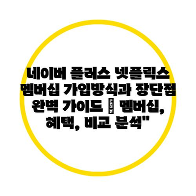 네이버 플러스 넷플릭스 멤버십 가입방식과 장단점 완벽 설명서 | 멤버십, 혜택, 비교 분석