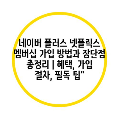 네이버 플러스 넷플릭스 멤버십 가입 방법과 장단점 총정리 | 혜택, 가입 절차, 필독 팁”에 대해 자주 묻는 질문 TOP 5