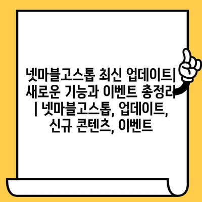 넷마블고스톱 최신 업데이트| 새로운 기능과 이벤트 총정리 | 넷마블고스톱, 업데이트, 신규 콘텐츠, 이벤트