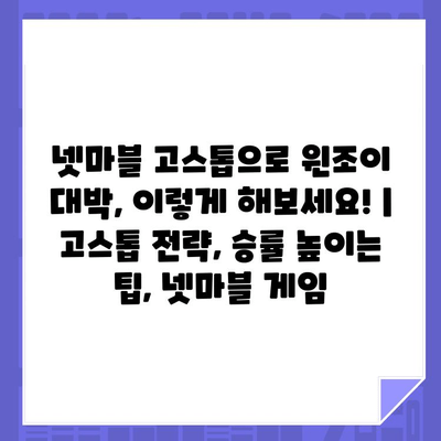 넷마블 고스톱으로 윈조이 대박, 이렇게 해보세요! | 고스톱 전략, 승률 높이는 팁, 넷마블 게임 에 대해 자주 묻는 질문 TOP 5
