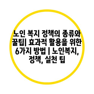 노인 복지 정책의 종류와 꿀팁| 효과적 활용을 위한 6가지 방법 | 노인복지, 정책, 실천 팁