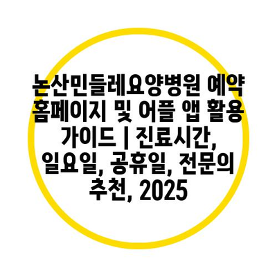 논산민들레요양병원 예약 홈페이지 및 어플 앱 활용 설명서 | 진료시간, 일요일, 공휴일, 전연락 추천, 2025 에 대해 자주 묻는 질문 TOP 5