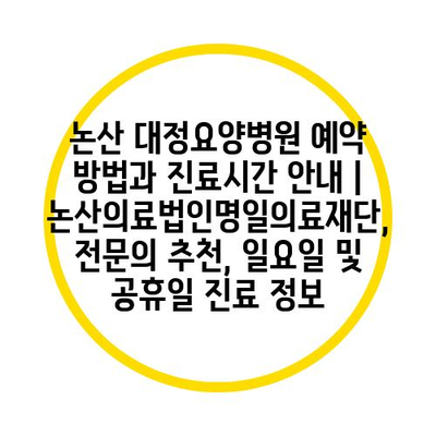 논산 대정요양병원 예약 방법과 진료시간 공지 | 논산의료법인명일의료재단, 전연락 추천, 일요일 및 공휴일 진료 정보에 대해 자주 묻는 질문 TOP 5