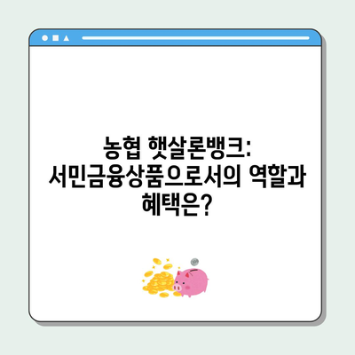 농협 햇살론뱅크: 서민금융상품으로서의 역할과 혜택은?