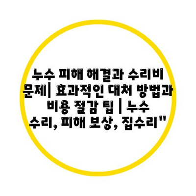 누수 피해 해결과 수리비 문제| 효과적인 대처 방법과 비용 절감 팁 | 누수 수리, 피해 보상, 집수리에 대해 자주 묻는 질문 TOP 5