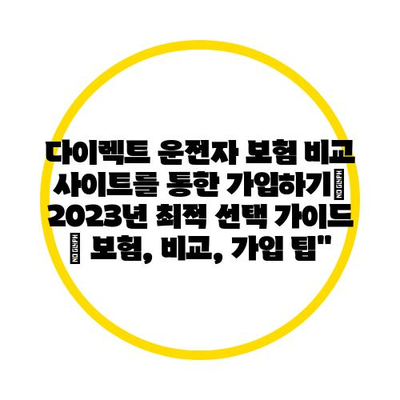 다이렉트 운전자 보험 비교 사이트를 통한 가입하기| 2023년 최적 선택 가이드 | 보험, 비교, 가입 팁”