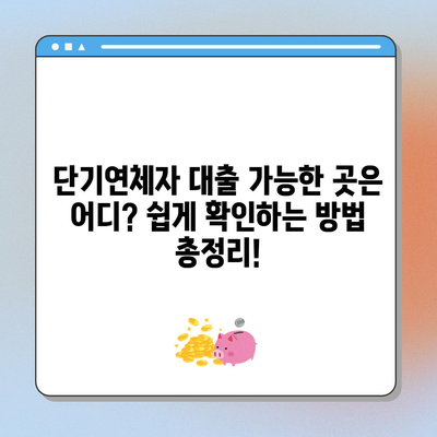 Meta Description: 단기연체자 대출 가능한 곳 모두 확인하기! 이 글에서 다양한 대출 상품과 조건에 대해 상세히 안내합니다.