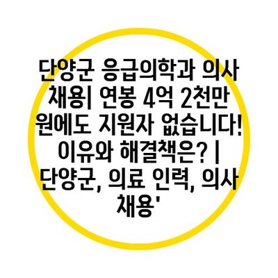 단양군 응급의학과 의사 채용| 연봉 4억 2천만 원에도 지원자 없습니다! 이유와 해결책은?