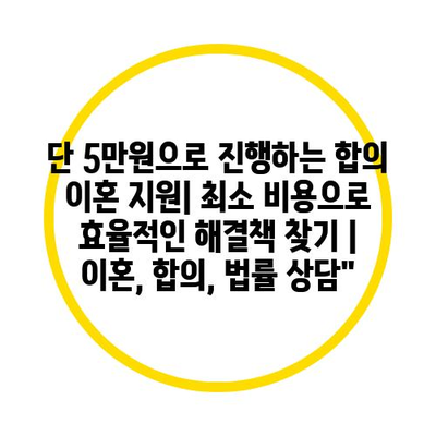 단 5만원으로 진행하는 합의 이혼 지원| 최소 비용으로 효율적인 해결책 찾기 | 이혼, 합의, 법률 상담” 에 대해 자주 묻는 질문 TOP 5