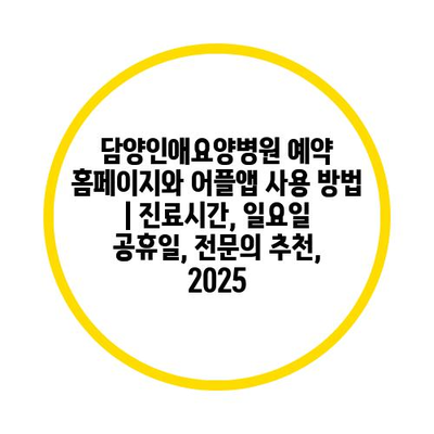 담양인애요양병원 예약 홈페이지와 어플앱 사용 방법 | 진료시간, 일요일 공휴일, 전연락 추천, 2025 에 대해 자주 묻는 질문 TOP 5
