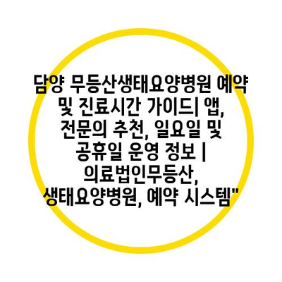 담양 무등산생태요양병원 예약 및 진료시간 가이드| 앱, 전문의 추천, 일요일 및 공휴일 운영 정보 | 의료법인무등산, 생태요양병원, 예약 시스템”
