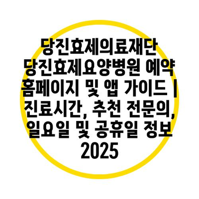 당진효제의료재단 당진효제요양병원 예약 홈페이지 및 앱 가이드 | 진료시간, 추천 전문의, 일요일 및 공휴일 정보 2025