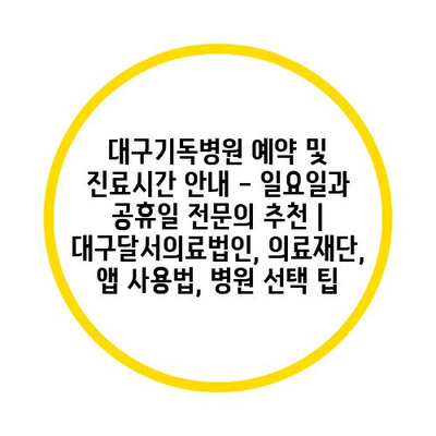 대구기독병원 예약 및 진료시간 안내 – 일요일과 공휴일 전문의 추천 | 대구달서의료법인, 의료재단, 앱 사용법, 병원 선택 팁