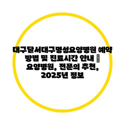 대구달서대구명성요양병원 예약 방법 및 진료시간 공지 | 요양병원, 전연락 추천, 2025년 정보 에 대해 자주 묻는 질문 TOP 5