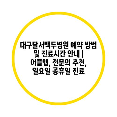 대구달서백두병원 예약 방법 및 진료시간 안내 | 어플앱, 전문의 추천, 일요일 공휴일 진료