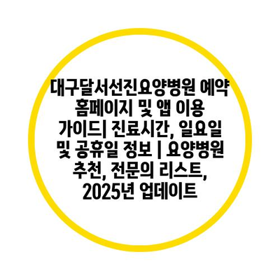 대구달서선진요양병원 예약 홈페이지 및 앱 이용 가이드| 진료시간, 일요일 및 공휴일 정보 | 요양병원 추천, 전문의 리스트, 2025년 업데이트