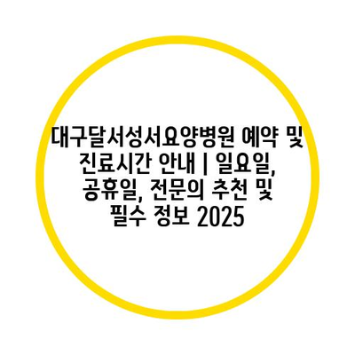 대구달서성서요양병원 예약 및 진료시간 공지 | 일요일, 공휴일, 전연락 추천 및 필수 정보 2025