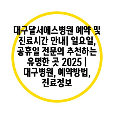 ✅ 대구달서에스병원의 예약 방법과 진료 정보를 자세히 알아보세요.