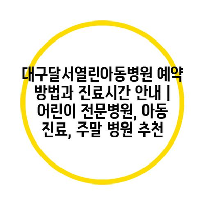 대구달서열린아동병원 예약 방법과 진료시간 공지 | 어린이 전문병원, 아동 진료, 주말 병원 추천 에 대해 자주 묻는 질문 TOP 5