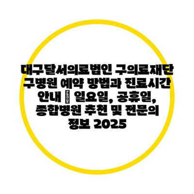 대구달서의료법인 구의료재단 구병원 예약 방법과 진료시간 공지 | 일요일, 공휴일, 종합병원 추천 및 전연락 정보 2025에 대해 소개합니다.