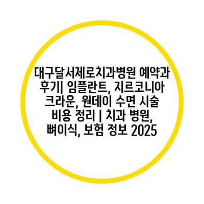 대구달서제로치과병원 예약과 후기| 임플란트, 지르코니아 크라운, 원데이 수면 시술 비용 정리 | 치과 병원, 뼈이식, 보험 정보 2025