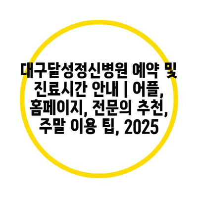 대구달성정신병원 예약 및 진료시간 공지 | 어플, 홈페이지, 전연락 추천, 주말 이용 팁, 2025 에 대해 자주 묻는 질문 TOP 5