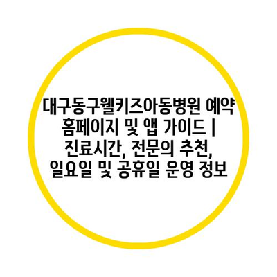 ✅ 대구동구웰키즈아동병원의 예약 방법을 지금 바로 알아보세요!