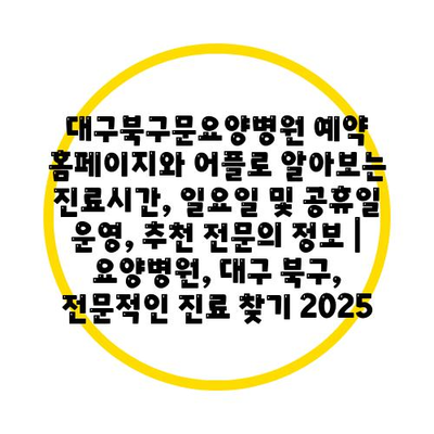 대구북구문요양병원 예약 홈페이지와 어플로 알아보는 진료시간, 일요일 및 공휴일 운영, 추천 전연락 정보 | 요양병원, 대구 북구, 전문적인 진료 찾기 2025 에 대해 자주 묻는 질문 TOP 5