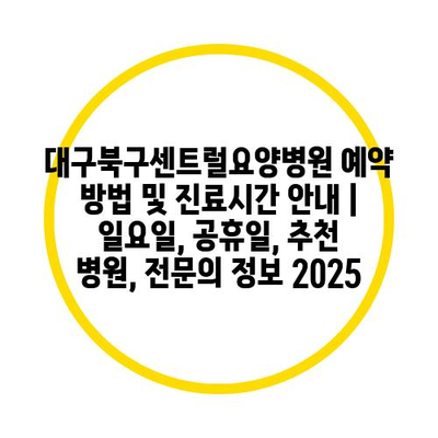 대구북구센트럴요양병원 예약 방법 및 진료시간 공지 | 일요일, 공휴일, 추천 병원, 전연락 정보 2025