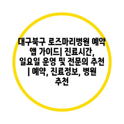 ✅ 대구북구 로즈마리병원 진료시간과 일요일 운영 정보를 알아보세요.