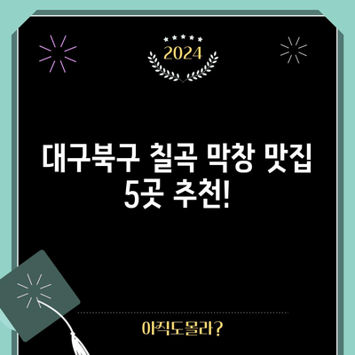 💡 대구 북구에서 최고의 막창 맛집을 찾고 싶다면 클릭하세요! 💡