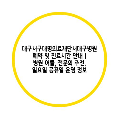 대구서구대명의료재단서대구병원 예약 및 진료시간 공지 | 병원 어플, 전연락 추천, 일요일 공휴일 운영 정보 에 대해 자주 묻는 질문 TOP 5