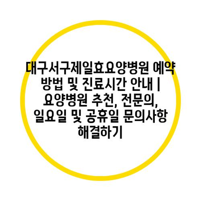 대구서구제일효요양병원 예약 방법 및 진료시간 안내 | 요양병원 추천, 전문의, 일요일 및 공휴일 문의사항 해결하기