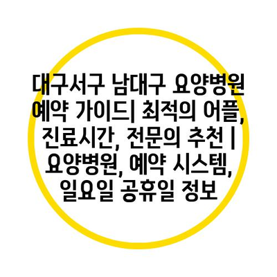 대구서구 남대구 요양병원 예약 가이드| 최적의 어플, 진료시간, 전문의 추천 | 요양병원, 예약 시스템, 일요일 공휴일 정보