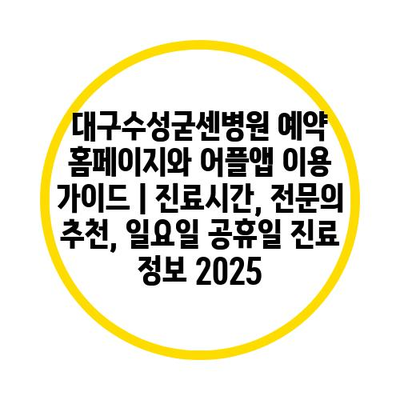 대구수성굳센병원 예약 홈페이지와 어플앱 이용 가이드 | 진료시간, 전문의 추천, 일요일 공휴일 진료 정보 2025