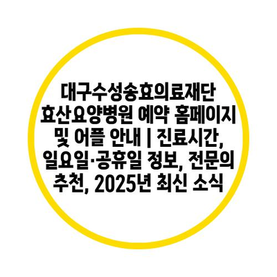 대구수성송효의료재단 효산요양병원 예약 홈페이지 및 어플 안내 | 진료시간, 일요일·공휴일 정보, 전문의 추천, 2025년 최신 소식