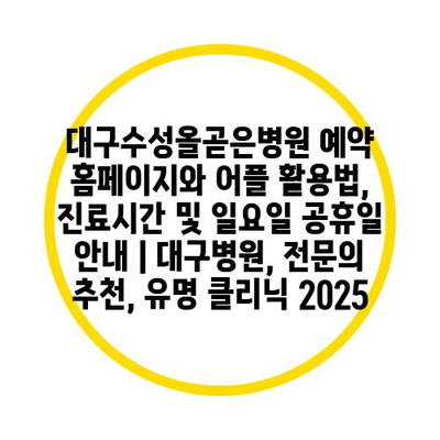 ✅ 대구 수성올곧은병원 예약 방법과 팁을 알아보세요.