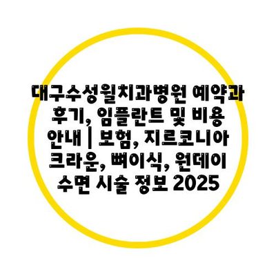 대구수성윌치과병원 예약과 후기, 임플란트 및 비용 공지 | 보험, 지르코니아 크라운, 뼈이식, 원데이 수면 시술 정보 2025