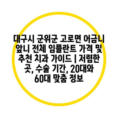 대구시 군위군 고로면 어금니 앞니 전체 임플란트 가격 및 추천 치과 가이드 | 저렴한 곳, 수술 기간, 20대와 60대 맞춤 정보