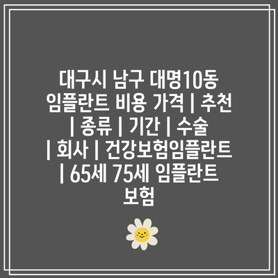 대구시 남구 대명10동 임플란트 비용 가격 | 추천 | 종류 | 날짜 | 수술 | 회사 | 건강보험임플란트 | 65세 75세 임플란트 보험 에 대해 자주 묻는 질문 TOP 5